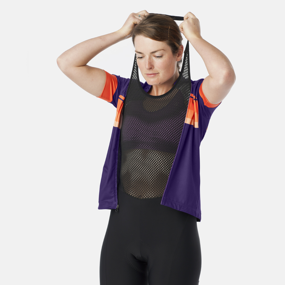 A great bib short is the best foundation for longer, faster rides. But bibs can also be a challenge when nature calls. That’s why Giro engineered their Women’s Chrono Expert Halter with convenience in mind, so that you don’t have to be Houdini when you need to make a stop. Simply remove the halter, pull down the bibs, and you’re ready to go. You don’t even need to unzip your jersey. Giro uses premium Italian fabrics to ensure optimal compression and comfort, and tailored the fit so that each seam works with your body in motion. A storage pocket at the lower back provides freedom to choose your top layers too, so that you can keep going with confidence and style.
